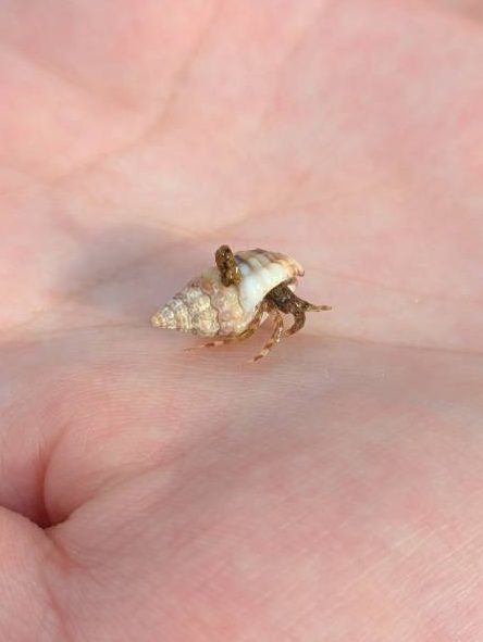 カブトガニ博物館を出て少し車を走らせると、綺麗な海があります。カブトガニの保護も行っている場所のようです。フナムシや小さなカニ、貝や虫など多くの生き物が生息していましたが、一番うれしかったのは大好きなヤドカリに出会えたこと。ユビナガホンヤドカリでしょうか。最初は見つけるのに苦労しましたが、コツをつかめば面白いほどに捕獲できました。
