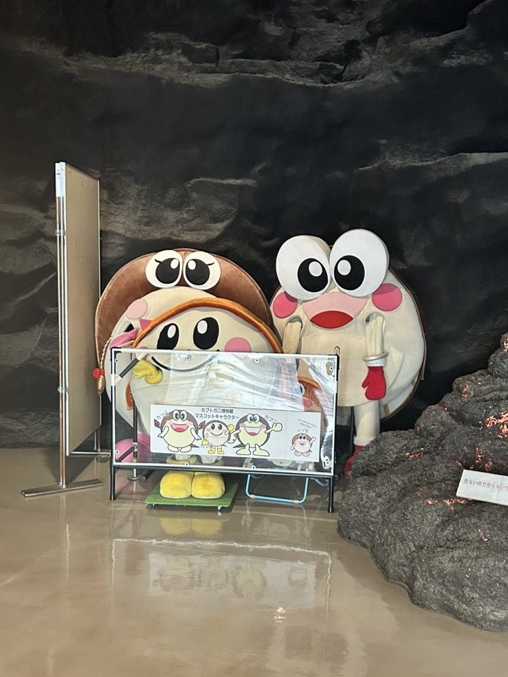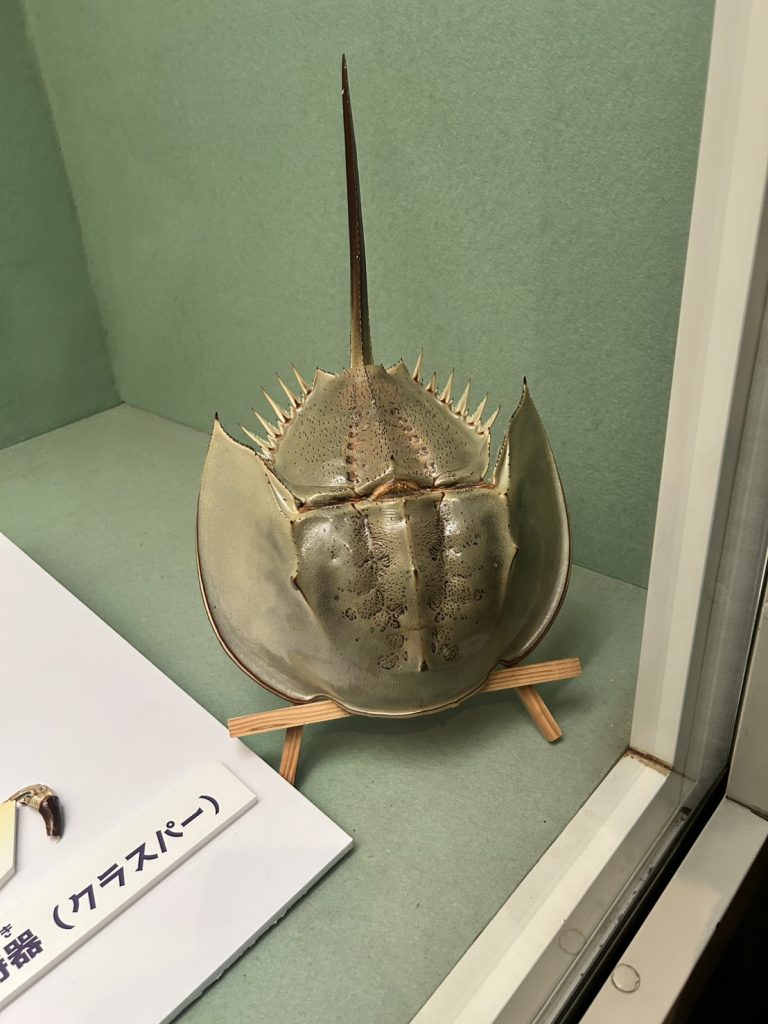 博物館の中には生きたカブトガニの展示から、多くのはく製や写真、ビデオブースやカブトガニのあれやこれやに関する説明がずらりと展示されており、カブトガニのことを沢山知ることができます。節足動物大好きな私にとってはたまらない空間で楽しかったです。カブトガニ博物館のキャラクターのカブ海ちゃんたちは、AIには出力することができない良い味わいがあります。グッズも沢山購入してしまいました。