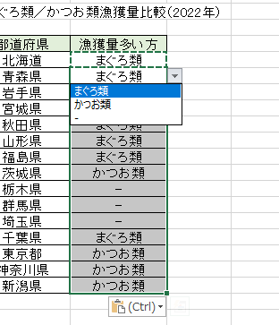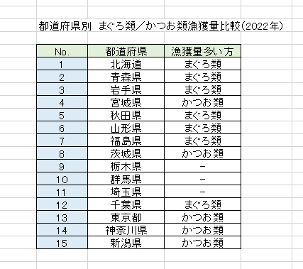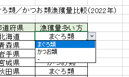 ・「リスト」に含めた値が『まぐろ類』『かつお類』