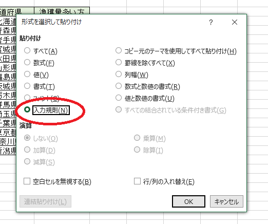 ※普通のコピーでは、「入力規則」だけでなく「値」や「書式」も一緒にコピーされてしまいます。