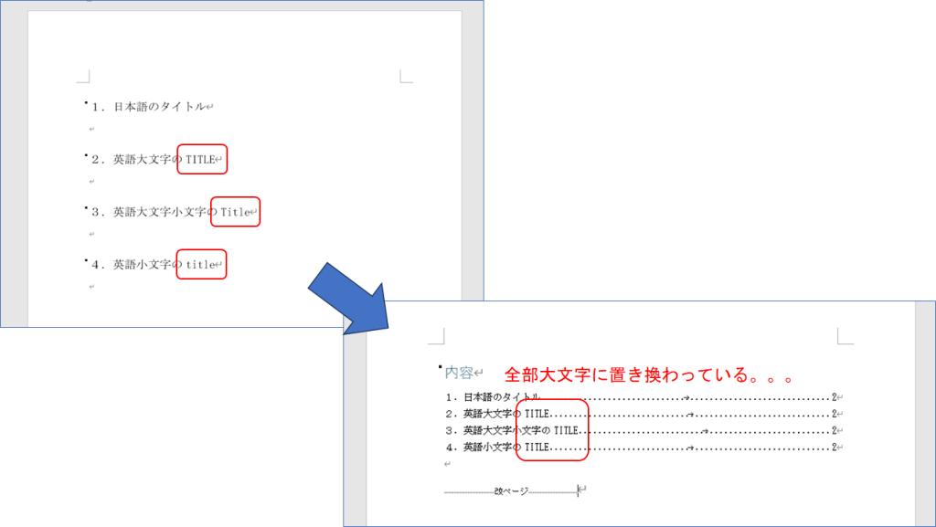 Word文章に目次を入れたところ、英語部分が全部大文字になってしまった経験はありませんか?