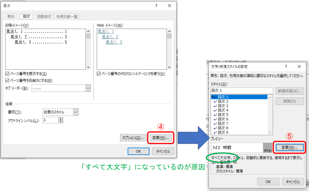 備忘録:Wordの目次で、英語が全部大文字になってしまう問題